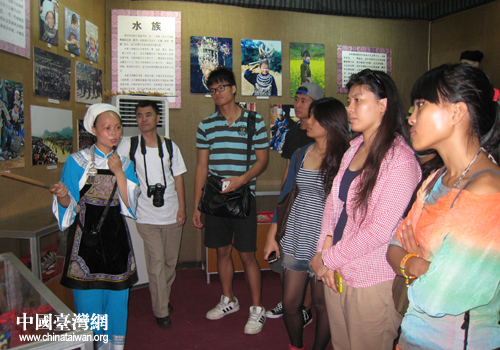 中國臺(tái)灣網(wǎng)7月19日三都消息 日前,2012年臺(tái)灣青年千人夏令營貴州分營踏上三都水族自治縣。走進(jìn)水族民族博物館領(lǐng)略神秘的水族文化。三都是全國唯一的水族自治縣,水族人口占全縣人口的80%,水族有自己的文字和語言。