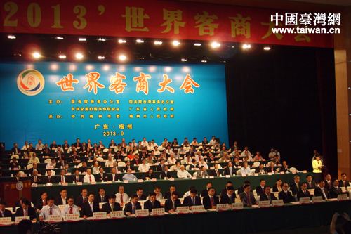 2013'世界客商大會開幕式在梅州市客家藝術中心召開。(梅州臺辦供圖)