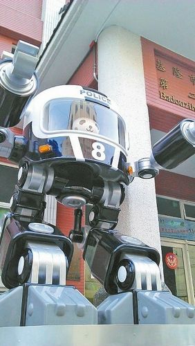 擺設在基隆警分局的大型警察公仔。來源:臺灣《聯合報》