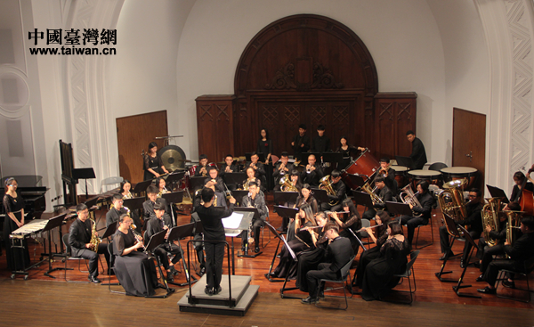 臺(tái)灣師范大學(xué)管樂團(tuán)于音樂會(huì)下半場進(jìn)行演出。(中國臺(tái)灣網(wǎng) 王思羽 攝)