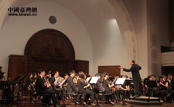 首都師范大學(xué)管樂團(tuán)于音樂會(huì)上半場進(jìn)行演出。(中國臺(tái)灣網(wǎng) 王思羽 攝)