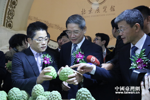 中國臺灣網12月24日北京訊 (記者 朱煉)12月24日,臺灣8縣市農特產品展銷暨旅游推介洽談會在北京展覽館舉行。中共中央臺辦、國務院臺辦主任張志軍,北京市人民政府副市長王寧,中國國民黨副主席陳鎮湘、臺灣新北、新竹、苗栗、花蓮、南投、臺東、金門及連江等縣市負責人共同出席開幕式等活動。來自上述8縣市的近130家展商攜當地特色農特產品參展,近60名旅游業者與來自京津冀的旅游業界代表進行了對接洽談。大陸企業將與臺灣8縣市簽訂產品供銷合作意向,探討以市場化原則開展常態化合作。