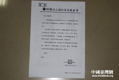 江丙坤先生的回信。圖片來源:安陽臺辦
