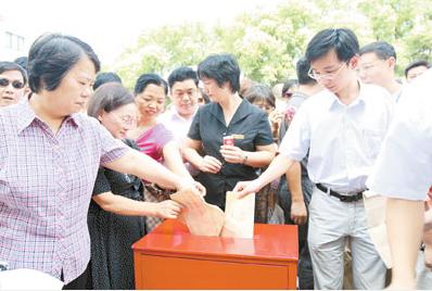 8月20日,省委辦公廳干部職工向臺灣災區捐款。張目 攝