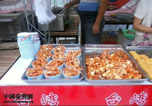 中國(guó)臺(tái)灣網(wǎng)7月4日沈陽(yáng)消息 日前,臺(tái)灣小吃蚵仔煎、芙蓉蝦、甜不辣、大腸包小腸等臺(tái)灣特色美食空降沈陽(yáng),在著名的沈陽(yáng)中街步行街迎來(lái)了臺(tái)灣美食節(jié)。
