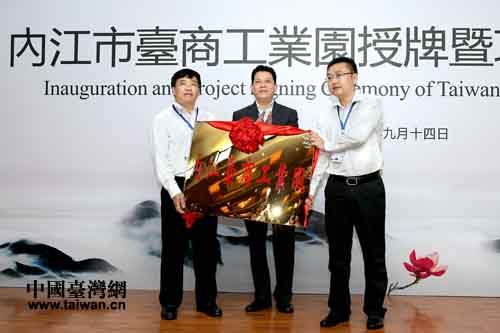 四川省政協副主席楊興平為內江市臺商工業園授牌。(內江市臺辦供圖)