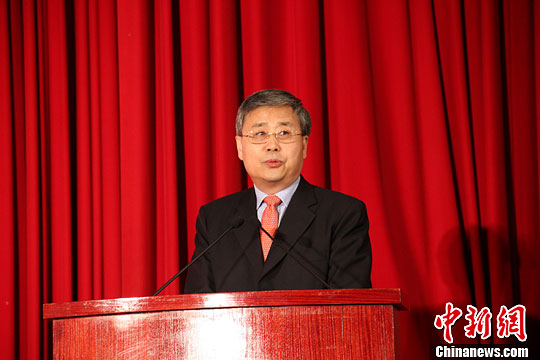 圖為28日晚山東省長郭樹清致辭。冽瑋 攝