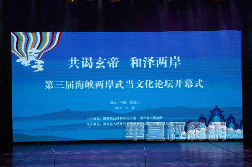 華夏經緯網10月26日訊:25日晚,第三屆海峽兩岸武當文化論壇在武當山太極劇場舉行開幕儀式。出席開幕式的重要嘉賓有海峽兩岸關系協會副會長蔣耀平、臺灣海峽交流基金會副董事長高孔廉、湖北省第十屆政協副主席陳柏槐、中共十堰市委書記周霽。