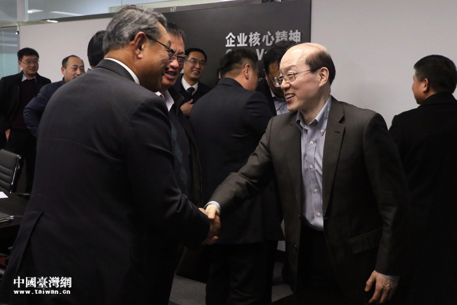 1月16日,中央臺辦、國務院臺辦主任劉結一在安徽省合肥市走訪調研臺資企業,與當地臺商、臺青、臺籍師生等各界臺胞交流座談。圖為劉結一主任與參會人員握手致意。(中國臺灣網 尹賽楠 攝)