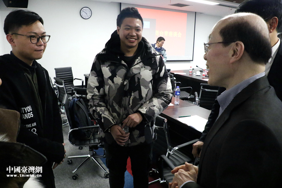 1月16日,中央臺辦、國務院臺辦主任劉結一與安徽省合肥市當地臺商、臺青、臺籍師生等各界臺胞交流座談。圖為劉結一主任在座談會后與臺灣青年親切交談。(中國臺灣網 尹賽楠 攝)