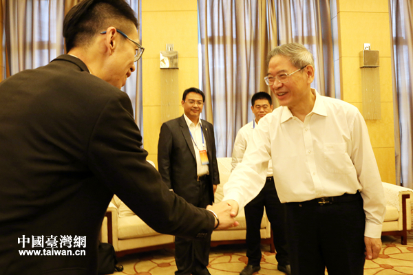 7月18日上午,全國人大常委會委員、海協(xié)會會長張志軍會見參加第三屆海峽兩岸青年東湖論壇的臺灣青年代表。(中國臺灣網(wǎng) 趙苗青 攝)