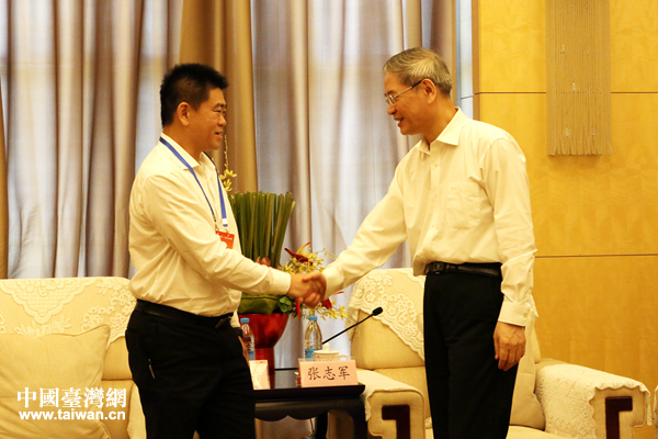 7月18日上午,全國人大常委會委員、海協會會長張志軍會見參加第三屆海峽兩岸青年東湖論壇的臺灣青年代表。(中國臺灣網 趙苗青 攝)