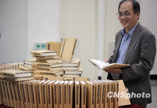 10月28日,《臺灣史料集成》系列中最龐大的工程《明清臺灣檔案匯編》在臺北正式完工。累積臺灣歷史幾世紀的史料,《臺灣史料集成——明清臺灣檔案匯編》耗費七年時間,經過多方、無數學者努力搜集與整理,共出版5輯110冊,涵蓋了明清時期臺灣的政治、社會、文化與市民生活等內容。 中新社發 李佳佳 攝