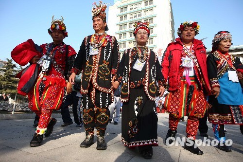 中新社北京十二月二十一日電 (記者 邢利宇) “臺灣少數民族歷史文化展”二十一日在北京民族文化宮隆重開幕。這是大陸首次舉辦比較全面、系統介紹臺灣少數民族文化和歷史的大型主題展覽。臺灣少數民族十四個族群的長老頭目等同時亮相開幕式,這也是臺灣少數民族代表首次成規模地來大陸參訪。