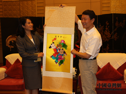 李崇禧向高金素梅贈送綿竹年畫(中國臺灣網(wǎng) 宿靜 攝)