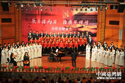 臺灣雅樂合唱團是江丙坤夫人江陳美惠于2002年組建的一支臺灣民間合唱團,致力于兩岸文化和民間藝術的交流與合作,近年來在北京、上海、江蘇等多個省市開展交流演出。本次是他們首次來到四川表演。音樂會上,雅樂合唱團演唱了觀眾耳熟能詳?shù)摹短鹈勖邸贰对铝链砦业男摹返惹浚特別為到場臺商帶來閩南語歌曲。四川音樂學院青年合唱團獻上具有四川特色和民族風情的曲目。兩支合唱團的精彩演出給現(xiàn)場觀眾帶來唯美的音樂享受,贏得熱烈掌聲,最后,兩支合唱團共同演繹了《同一首歌》,將音樂會的氣氛推到高潮。