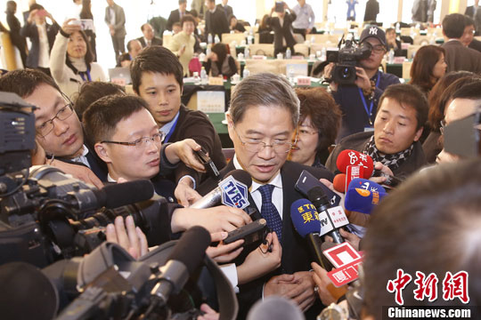 12月22日,張志軍出席“2013海峽兩岸媒體前瞻論壇”被記者圍堵采訪。當日,“2013海峽兩岸媒體前瞻論壇”在北京舉行,中共中央臺辦、國務院臺辦主任張志軍出席論壇開幕式并致辭。中新社發 盛佳鵬 攝