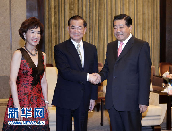 中共中央政治局常委、全國政協主席賈慶林9日下午在上海西郊賓館會見了中國國民黨榮譽主席連戰和夫人以及出席臺胞社團論壇的部分代表。