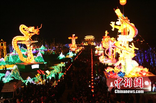 29日,“神龍躍兩岸,盛世共和諧”2011江蘇(揚(yáng)州)燈會(huì)在揚(yáng)州瘦西湖畔宋夾城正式亮燈迎客,再現(xiàn)“火樹(shù)銀花不夜天”勝景。崔佳明 攝