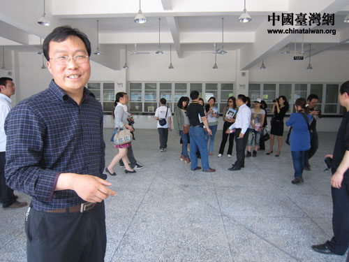 名山縣副縣長劉勇向記者介紹名山縣與臺灣互相援助的情況。2009年臺灣遭受“莫拉克”風災后,當地百姓紛紛捐款(中國臺灣網 朱毅 攝)