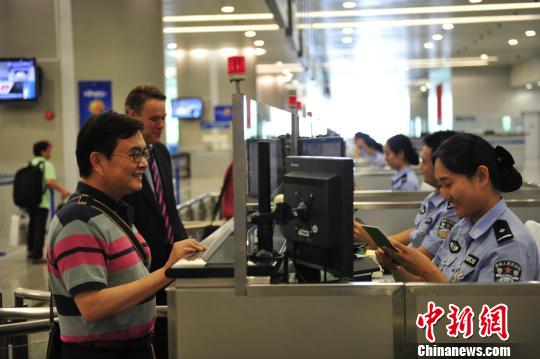 上午10:30,乘坐華航501航班抵達(dá)的徐先生成為自上海入境享受新政第一人。據(jù)了解,徐先生現(xiàn)年39歲,來(lái)自臺(tái)北桃園,當(dāng)?shù)弥约河行页蔀槊夂炄刖成虾5牡谝蝗藭r(shí),連嘆自己“運(yùn)氣不錯(cuò)”。同期乘坐華航712航班入境的林先生出生在臺(tái)北新竹,數(shù)年前進(jìn)入上海一家臺(tái)灣公司工作,每月都要在兩地間往返。今天入境時(shí),林先生告訴記者,以往每次返回上海前,都要準(zhǔn)備多次有效簽注,并需經(jīng)常留意簽注的過(guò)期時(shí)限;每回落地辦理邊檢入境手續(xù)時(shí),民警都會(huì)查驗(yàn)其簽注并加蓋邊檢入境章。這次,民警只進(jìn)行人證對(duì)照并掃描證件信息即放其通關(guān),辦理入境手續(xù)時(shí)間大大縮短。他表示,相信免簽新政實(shí)施后,來(lái)大陸將更方便、更輕松。
