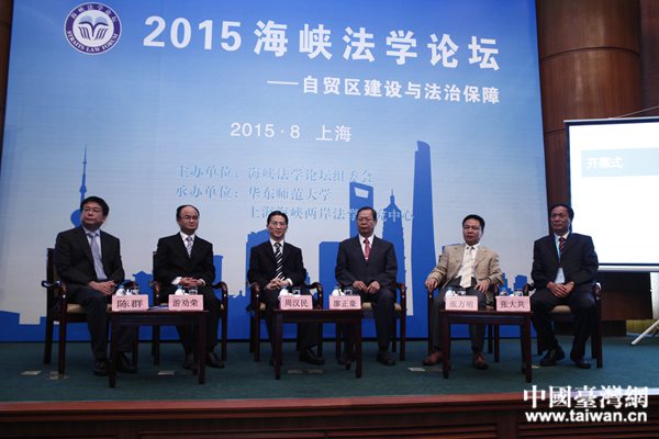 中國(guó)臺(tái)灣網(wǎng)8月19日迅 (記者 尹賽楠)19日,以“自貿(mào)區(qū)建設(shè)與法治保障”為主題的第十三屆海峽法學(xué)論壇在華東師范大學(xué)學(xué)術(shù)交流中心報(bào)告廳隆重舉行。本屆論壇由上海海峽兩岸法學(xué)研究中心承辦,來自兩岸三地的法學(xué)專家及法律實(shí)務(wù)界人士代表共210余人參加了論壇。