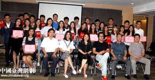 參加第二屆“2016海外臺(tái)灣留學(xué)生長(zhǎng)三角研習(xí)營(yíng)”的兩岸大學(xué)生在江蘇江蘇昆山舉行結(jié)營(yíng)儀式。(中國(guó)臺(tái)灣網(wǎng)記者 李杰 攝)