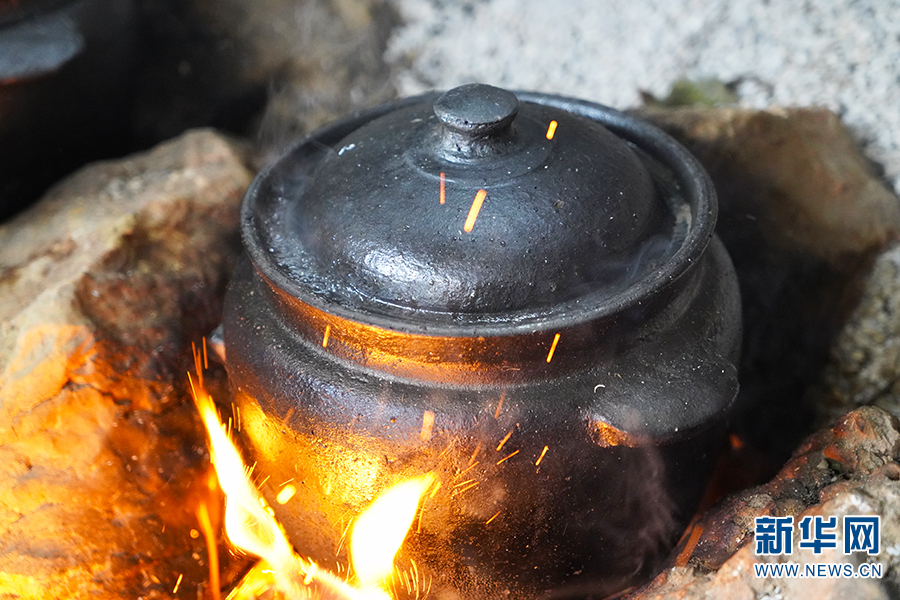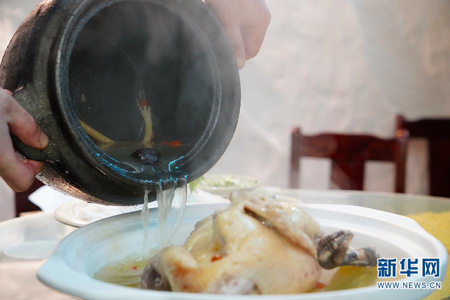 用當地燒制的土罐燉土雞(2020年12月30日攝)。新華網發(李丹 攝)