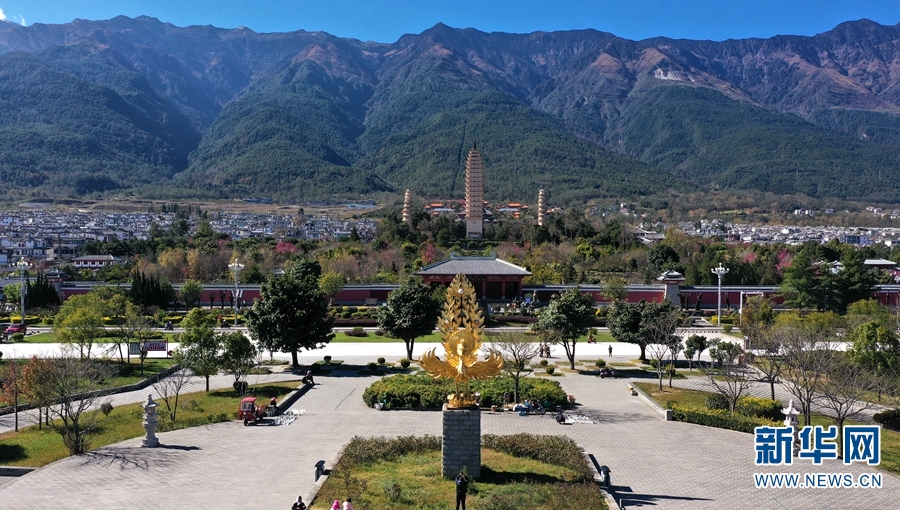 崇圣寺三塔位于大理古城西北角,背靠蒼山,面臨洱海,是“文獻名邦”大理的標志和象征。三塔始建于唐朝,主塔名為千尋塔,塔高69.13米,南北兩座小塔塔高均為42.19米,三塔鼎足而立,歷經千年風雨和多次地震,至今巍然屹立,堪稱建筑史上的奇跡。崇圣寺三塔歷史悠久、文化內涵豐富、美學價值獨特,是國務院首批公布的全國重點文物保護單位,也是國家5A級旅游景區,每年都吸引著大量的游客前來觀光旅游。(新華網 趙普凡、丁凝、念新洪/攝影報道)