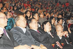 連戰全神貫注看完整出戲,他在貴賓室里握著茅威濤的手說:“這出戲文化水平太高了,演員各個出口成詩。”最后導演郭曉男代表小百花致贈“梁祝”銅雕塑像以及演出DVD給連戰和吳敦義。