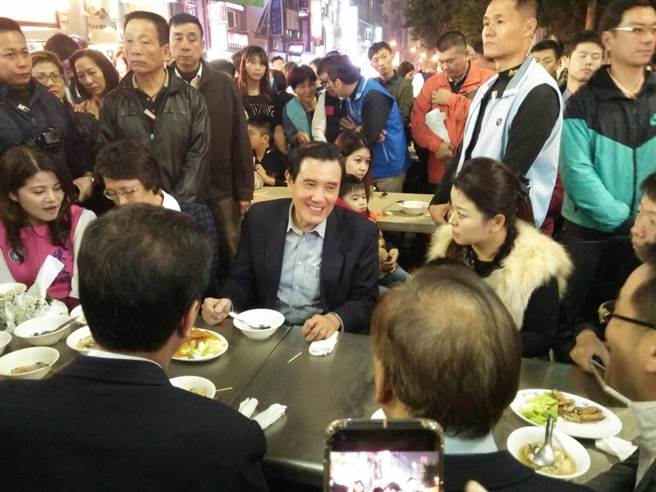 馬英九跨年夜到六合夜巿吃海產(chǎn)粥。(圖片來(lái)源:臺(tái)灣《中時(shí)電子報(bào)》)