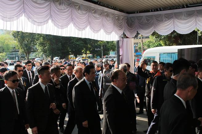 公祭現(xiàn)場,前臺灣地區(qū)領導人馬英九、臺當局前“行政院長”郝柏村、前“國防部長”高華柱、臺軍前陸軍中將副司令吳斯懷、國民黨主席吳敦義陸續(xù)到場致意。