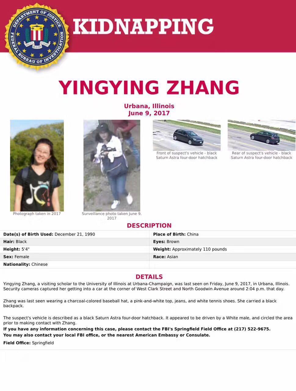 當(dāng)?shù)貢r(shí)間6月14日,美國聯(lián)邦調(diào)查局已經(jīng)將伊利諾伊大學(xué)香檳分校中國訪問學(xué)者章瑩穎的失蹤案定性為綁架。據(jù)了解,自6月9號(hào)下午章瑩穎被一輛黑色的車帶走后,至今下落不明。事件發(fā)生后在當(dāng)?shù)匾l(fā)高度關(guān)注。當(dāng)?shù)厝A人華僑留學(xué)生連續(xù)幾天進(jìn)行了搜尋。中國駐芝加哥總領(lǐng)事館已經(jīng)聯(lián)系到章瑩穎家人,并協(xié)助辦理赴美簽證。當(dāng)?shù)鼐皆诋?dāng)?shù)貢r(shí)間14日下午接受本臺(tái)記者采訪時(shí)表示,他們聯(lián)合美國聯(lián)邦調(diào)查局等執(zhí)法機(jī)構(gòu)對(duì)該案件進(jìn)行全面調(diào)查。(央視記者 李慧)