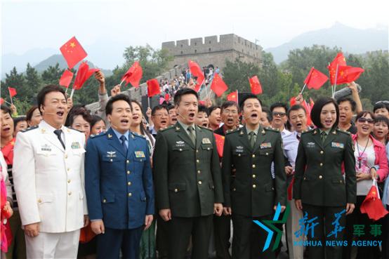 軍旅歌唱家在長城上進(jìn)行“軍歌快閃”活動