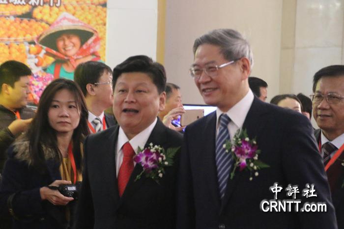 中共中央臺辦、國臺辦主任張志軍和花蓮縣縣長傅昆萁走入北京展覽館。(圖片來源:中評社)