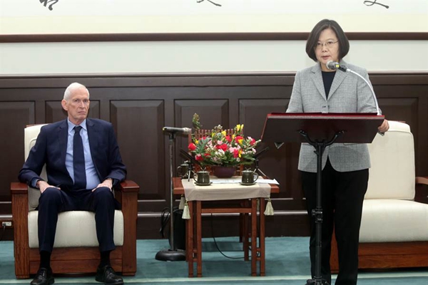 蔡英文(右)會見“美國在臺協會”主席莫健(左)。(圖片來源:臺媒)