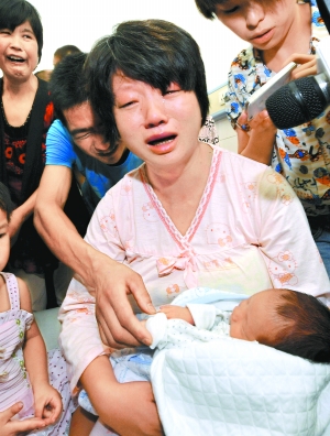昨天,被拐嬰兒的母親懷抱失而復得的孩子淚流滿面。新華社發