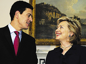 希拉里數月前還在為英外長米利班德“著迷”。