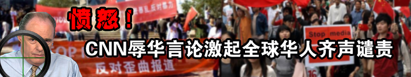 目前,一場由美國開始的“致美國有線電視新聞網(CNN)請愿書”網上簽名活動正在全球各地展開,已經有一萬多人在網上簽名。全球華人華僑強烈要求CNN就其新聞評論員卡弗蒂發表侮辱中國人言論一事進行道歉。請愿書說,“從一個國家級的電視節目中聽到這種肆無忌憚的攻擊一個民族的歧視言論,這極為反常。我們相信,他(卡弗蒂)的言論明白無誤地暴露了其仇恨所有中國人民的偏執心態。毋庸置疑,許多人受到了這種無恥攻擊的傷害,尤其是中國人”。 |