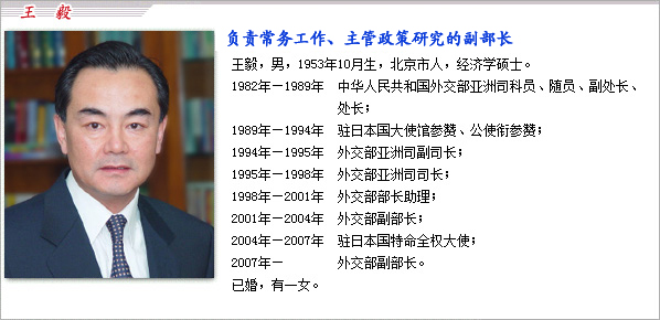 王毅生于1953年10月,北京人。1982年北京第二外國語學院亞非語系日語專業畢業。經濟學碩士。