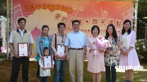 中新社臺北五月九日電(記者 鄧敏 耿軍)母親節前夕,臺北市“愛的光譜,微笑進駐”母愛影像征文比賽頒獎典禮五月九日在市長官邸藝文沙龍舉行,臺北市市長郝龍斌為得獎的六位選手頒獎,并在現場分享了自己與母親的親情故事。