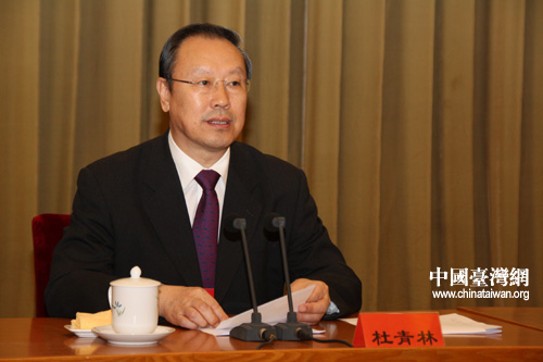 中國和平統(tǒng)一促進會第八屆理事大會23日在京舉行。全國政協(xié)副主席、中共中央統(tǒng)戰(zhàn)部部長、大會執(zhí)行主席杜青林受七屆常務理事會委托,作了題為《把握歷史機遇 凝聚強大力量 譜寫推進中國和平統(tǒng)一大業(yè)的新篇章》的工作報告。(中國臺灣網(wǎng) 田云鵬 攝)