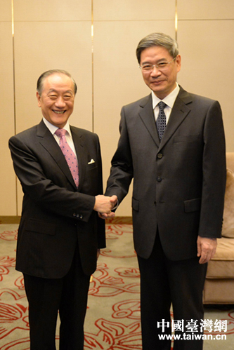 中共中央臺辦、國務(wù)院臺辦主任張志軍近日在中山市會見了前來出席第二屆海峽兩岸中山論壇的新黨主席郁慕明。(中國臺灣網(wǎng)發(fā))