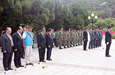 八二三炮戰(zhàn)55周年,馬英九(前右)率同臺軍高層將領 、金門各界首長追思陣亡將士。臺灣“中央社”