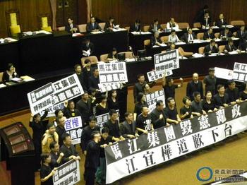 臺“行政院長”江宜樺按原定計劃于17日上午前往“立法院”作施政報告,但因王金平所涉司法關說案遭在野黨團杯葛破壞。“立法院長”王金平宣布暫時休息,希望藉由朝野協商解決。(圖片取自臺灣東森新聞網)