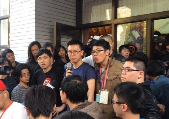 3月24日凌晨,反服貿人群攻占“行政院”。(臺媒圖)