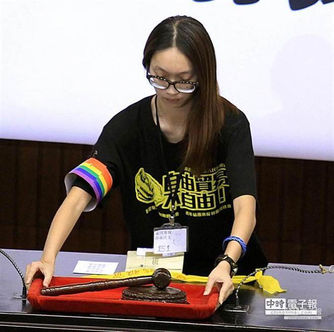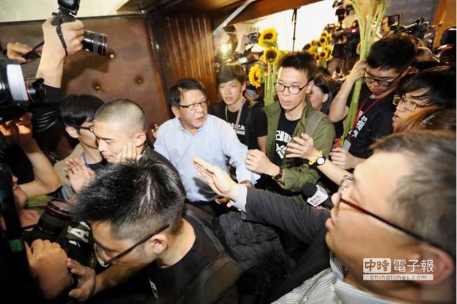 占領(lǐng)“立院”學(xué)生將議事槌歸還“國(guó)會(huì)”。 (圖片來(lái)自臺(tái)媒)