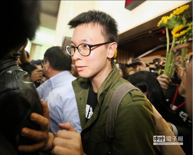 10日傍晚林飛帆(中)與同學(xué)們一起步出議場(chǎng)、離開(kāi)“立法院”。(圖片來(lái)自臺(tái)媒)