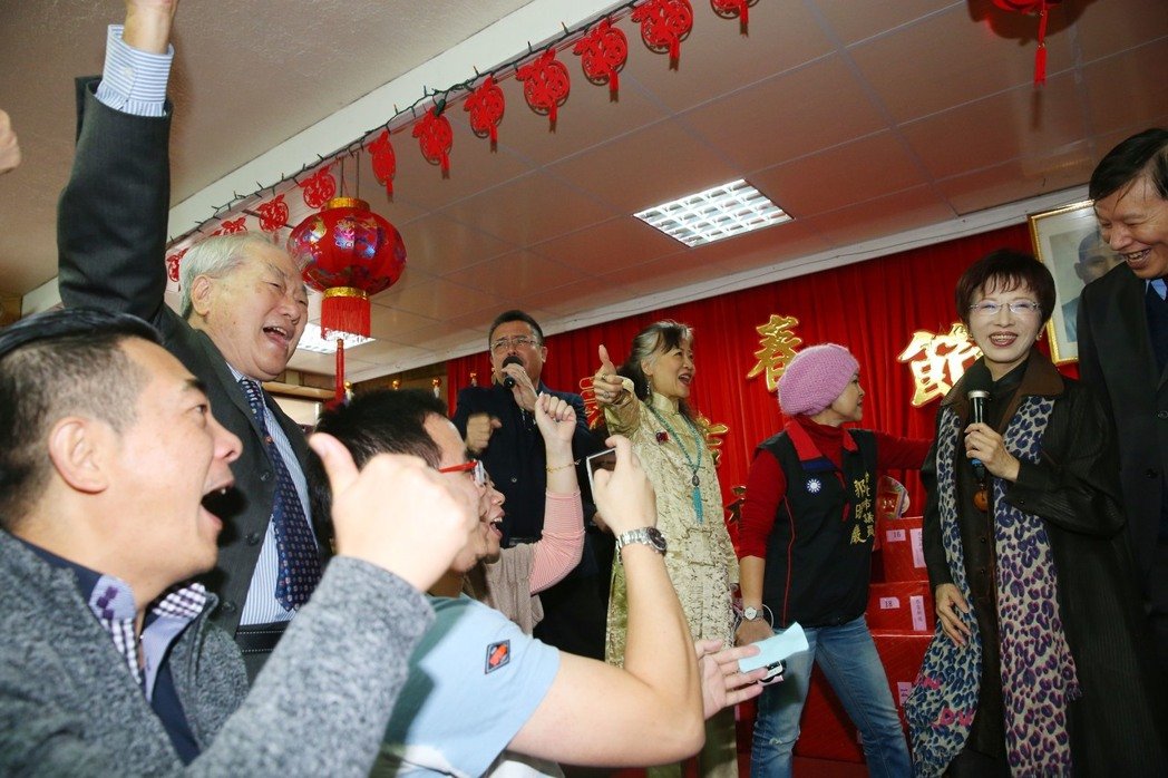 洪秀柱進入活動會場后,受到在場民眾歡呼及支持,她還用寧波話跟大家拜年。