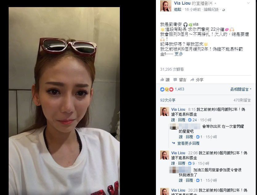 18日,劉喬安一開始是在自己的臉書開直播,但后來似乎是因為觀看她直播的網(wǎng)友人數(shù)不如預期,因此突然中斷,隨后她在另一個網(wǎng)絡平臺重開直播視訊,“我是劉喬安,想和大家說說話,支持我的,送我禮物吧,我要在入監(jiān)服刑前,賺生活費”,此舉也被網(wǎng)友挨批太矯情,“原來就是想跟大家要禮物啊”、“嫌看的人少嗎?”